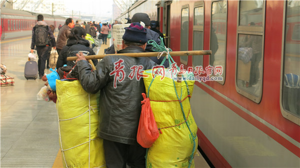 “難忘日間禾苗香,最憶夜半月如霜。斜暉脈脈千村照,黃水悠悠萬里長。年少時,想親娘,此心安處是吾鄉(xiāng)。”春運即將到來,島城一年一度的大遷徙再次拉開帷幕,天南地北的游子們,放下一年的辛苦與奔波,收拾行囊,踏上列車,開始了漫漫的回家之路?;疖囌救顺庇縿?,回家的激動、趕車的匆忙、候車的焦急、坐車的高興……說不完、訴不盡的“歸家”故事,勾勒出了一道獨特的春運風(fēng)景線。