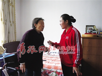 ■韋曉冬每天都要與公寓的老人交談了解其生活情況。 張 晉攝