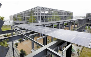 低碳城的外墻裝飾著綠色植物,貫徹綠色環(huán)保理念。深圳特區(qū)報(bào)記者丁慶林 攝