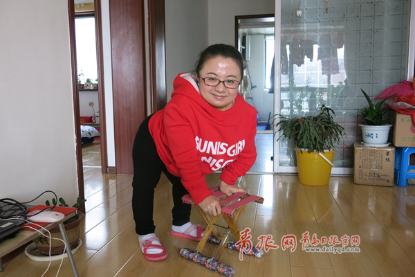 ????記者眼前的孟芳伊,個子矮小,雙腿因為脆骨病已嚴(yán)重變形,靠著一個小板凳支撐走路,因為下肢不能承重,一停就要坐下。