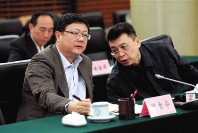 1日,環(huán)保部長(zhǎng)陳吉寧(左)和環(huán)保部副部長(zhǎng)潘岳出席媒體座談會(huì)。環(huán)保部供圖