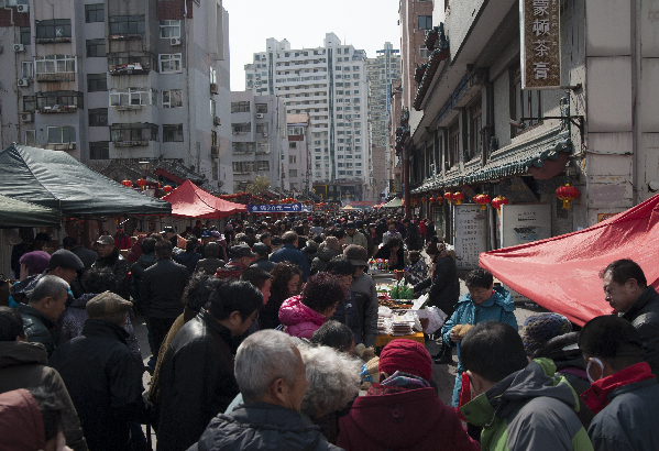 幾位俄羅斯姑娘在文化街上被各種小吃吸引,她們同時(shí)也成為人們眼中的風(fēng)景。