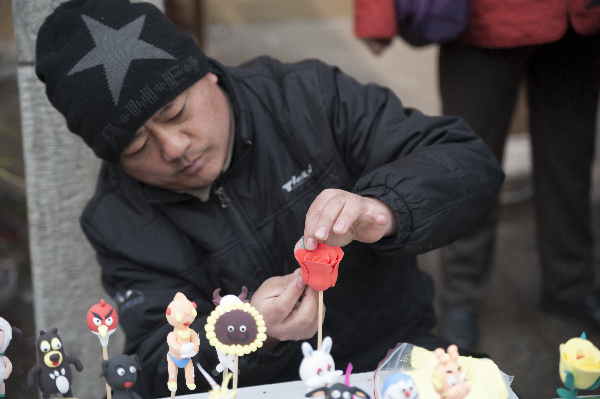 不少民間藝人也支起攤位,現(xiàn)場制作。