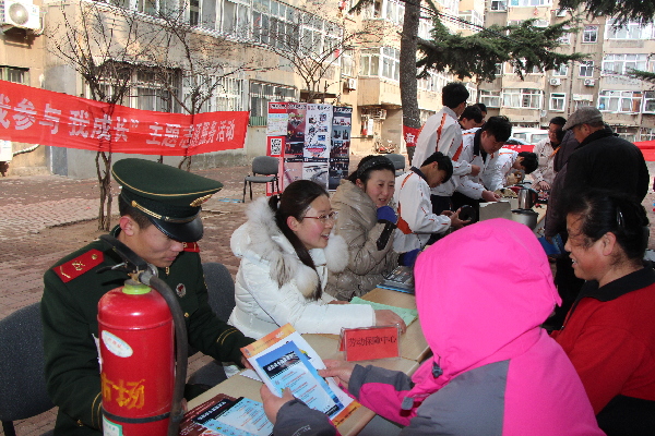 3月3日上午,在市北區(qū)瑞昌路59號染料廠宿舍院內(nèi),懸掛的“海倫路街道“我奉獻(xiàn)我快樂我參與我成長”主題志愿服務(wù)活動(dòng)”橫幅及擺放的宣傳展板,營造出學(xué)雷鋒活動(dòng)暖心的氛圍。來自市北區(qū)海倫路街道、青島第六人民醫(yī)院、青島市公安消防支隊(duì)特勤大隊(duì)二中隊(duì)、青島德利豐職業(yè)技能培訓(xùn)學(xué)校、四方機(jī)車車輛高級技工學(xué)校、青島罡川文化藝術(shù)中心的黨員特色崗、青年團(tuán)員等40余名志愿者一字排開,正在為居民群眾提供政策咨詢、民生解答、計(jì)生服務(wù)、急救示范、消防宣傳、免費(fèi)理發(fā)、家電維修、樂器培訓(xùn)等一系列的特色服務(wù)項(xiàng)目,還走進(jìn)養(yǎng)老院為老人洗頭、保潔等志愿活動(dòng),街道和各社區(qū)還組織20名青年志愿者在“2015年青島蘿卜·元宵·糖球會(huì)”“風(fēng)情市北”民俗展演活動(dòng)期間同步開展各種志愿活動(dòng),贏得了居民群眾的歡迎和稱贊。