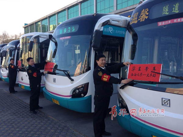 ????3月6日-3月8日,島城將迎來各高校學生集中返??土鳌楸U蠈W生們返校順利,交運溫馨巴士將在途經(jīng)島城7個客運站點、7所高校的606路、613路、隧道7路等24條線路上增加400余個班次,并安排6輛18米大通道公交車作為學生返校專車由汽車北站直達青島農(nóng)業(yè)大學。