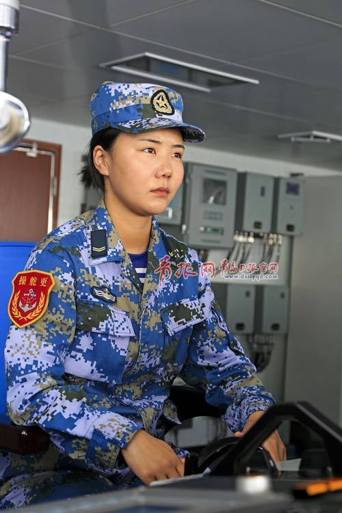 此時(shí),她又面臨人生的一次抉擇,學(xué)專業(yè)上艦艇還是到陸勤單位工作?此時(shí)此刻,從小向往大海的她毅然選擇了艦艇,選擇了操舵專業(yè),因?yàn)樗胍{馭戰(zhàn)艦在大洋上馳騁。