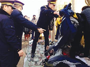 ????在濱河路靠近李村大集一處路口的位置,執(zhí)法人員上前勸離兩處占路經(jīng)營售賣舊衣服、舊鞋子以及水果等物品的攤點,并將攤主的部分貨物收拾起來,幫對方打包裝車??吹接浾叩溺R頭對準(zhǔn)自己和執(zhí)法人員,一名年齡約50歲左右的女性攤主有點兒不情愿:“我以后不在這兒擺了,你們千萬別拍我,萬一上了電視讓鄰居和子女們看見了,那就太丟人了。 ”