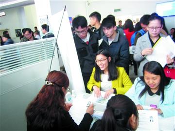 ????“我本來一直在準(zhǔn)備出國,這幾天結(jié)果下來了,我最喜歡的那個學(xué)校沒有通過,拿到的是另一所學(xué)校的通知書。”比起其他畢業(yè)生的熱情,來自中國石油大學(xué)(華東)的小王顯得有些淡定,她告訴記者,自己學(xué)的是財務(wù)會計專業(yè),之前一直想出國讀書,但考慮到錄取結(jié)果并不理想,她決定來就業(yè)市場上“試試水”。 “我問了一下其他人,發(fā)現(xiàn)其實出國讀完書,在國外同樣很難就業(yè),大多數(shù)還要回到國內(nèi)再進入就業(yè)市場,如果可以找到好工作,我就不出國了。 ”