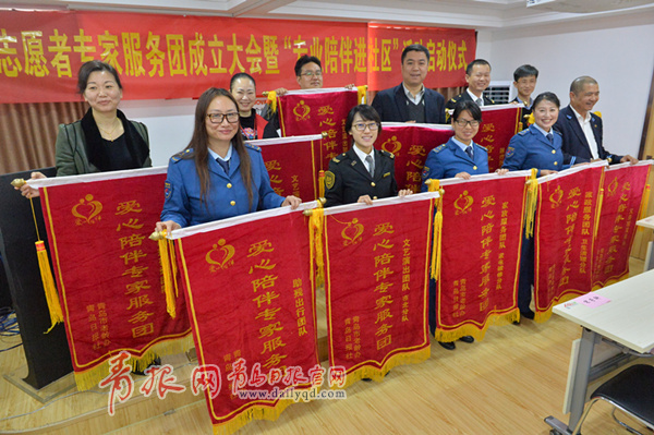 ????青島日?qǐng)?bào)/青報(bào)網(wǎng)訊?繼探索了規(guī)劃化服務(wù)、基地化服務(wù)等模式之后,“愛心陪伴空巢老人大型公益活動(dòng)”再推全新的陪伴形式——專業(yè)化志愿陪伴服務(wù)。28日上午,青島日?qǐng)?bào)/青報(bào)網(wǎng)與市老齡辦在市北區(qū)社會(huì)組織創(chuàng)益工場(chǎng)舉行“愛心陪伴空巢老人”大型公益活動(dòng)志愿者專家服務(wù)團(tuán)成立大會(huì),同時(shí)啟動(dòng)“專業(yè)陪伴進(jìn)社區(qū)”活動(dòng)。授旗成立首批7個(gè)“愛心陪伴”志愿者專家服務(wù)團(tuán),并根據(jù)區(qū)域?qū)Σ糠謱<曳?wù)團(tuán)劃分了分隊(duì)。當(dāng)日下午,部分志愿者專家服務(wù)團(tuán)成員分別赴市南區(qū)八大關(guān)街道金口路社區(qū)、市北區(qū)寧夏路街道龍?zhí)堵飞鐓^(qū)和嶗山區(qū)中韓街道枯桃社區(qū)三個(gè)“愛心陪伴”志愿者活動(dòng)基地,為200余位空巢老人送上了更加專業(yè)、更加貼心、更加有意義的愛心陪伴服務(wù)。