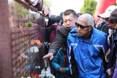 悼念儀式結(jié)束后,社會(huì)各界人士和捐獻(xiàn)者家屬在志愿者的引導(dǎo)下,捧著鮮花來到紀(jì)念墻下,向捐獻(xiàn)遺體的英雄們致敬。在前來參加悼念儀式的人群中,有一位兩鬢斑白的老人在兒子的攙扶下,來到紀(jì)念墻前,一遍又一遍地上下尋找妻子的名字。記者了解到,這位老人名叫林基民,他妻子2009年因病去世后進(jìn)行了遺體捐獻(xiàn),因?yàn)槠渌颍拮拥拿种皼]有出現(xiàn)在紀(jì)念墻上,但他每年4月都會(huì)在兒子的陪同下來奉獻(xiàn)林看望老伴?!敖衲昴赣H的名字終于刻在了奉獻(xiàn)林的紀(jì)念墻上,所以父親很在意?!绷只竦膬鹤痈嬖V記者,當(dāng)初捐獻(xiàn)遺體時(shí),兒女們都不理解,但是父親卻很堅(jiān)持,最終兒女們也都尊重父親的決定。“母親去世前,父母就已經(jīng)簽了遺體捐獻(xiàn)志愿書?!绷只竦膬鹤诱f。