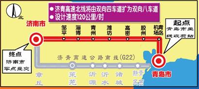 據(jù)介紹,國(guó)家高速青銀線青島至濟(jì)南段改擴(kuò)建工程是山東省橫貫東西的公路大動(dòng)脈。起點(diǎn)是青島市主線收費(fèi)站,終點(diǎn)是濟(jì)南市零點(diǎn)立交。整個(gè)路線呈西東向至濰坊以后稍向東南,全長(zhǎng)約309.2公里,橫穿山東中部的17個(gè)縣(市、區(qū)),連接了五條國(guó)道、十五條省道。濟(jì)青高速公路由青銀線和濟(jì)廣線相關(guān)路段組成,其中青島(青島主線新收費(fèi)站)至唐王樞紐段為青銀線,路線長(zhǎng)約287.3公里;唐王樞紐至零點(diǎn)立交段為濟(jì)廣線,路線長(zhǎng)約21.9公里。