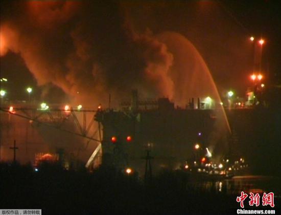 資料圖:2011年12月29日晚間,俄羅斯摩爾曼斯克州一艘名為“葉卡捷琳堡”號(hào)的核潛艇起火,6小時(shí)后大火被撲滅。(視頻截圖)
