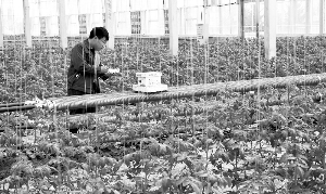在長春國信農(nóng)業(yè)社稷尚品有機(jī)果蔬基地智能溫室內(nèi),工作人員正在對溫度、濕度等相關(guān)數(shù)據(jù)進(jìn)行記錄。 趙大林 攝
