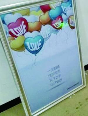 北京晨報(bào)記者昨日下午來(lái)到西城區(qū)民政局,發(fā)現(xiàn)原本貼在婚姻調(diào)解室墻上的海報(bào)已換上寫(xiě)著“一生相隨,挽手風(fēng)雨,執(zhí)子之手,與子偕老”的海報(bào)。據(jù)工作人員透露,下午2點(diǎn)左右原海報(bào)被撤下。