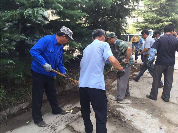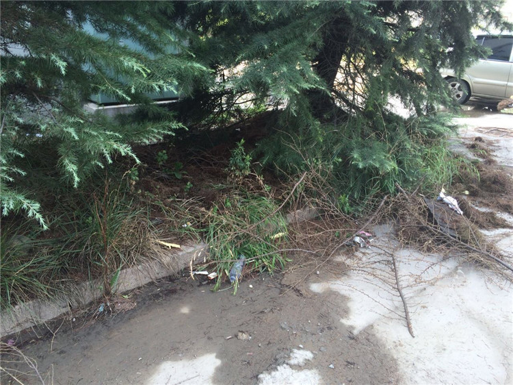 九水辦清理小區(qū)內(nèi)各花壇的枯枝雜草