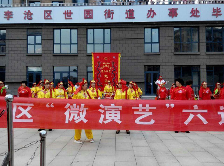 本站訊 8月22日至25日為期4天的李滄區(qū)“微演藝”六進活動及李滄區(qū)威風鑼鼓展演活動落下帷幕,這次參加的隊伍要求是區(qū)鑼鼓比賽前4名,我街道灣頭社區(qū)、大棗園社區(qū)鑼鼓隊參加了這次巡演,分別到振華路街道、世園街道、滄口公園和虎山路街道進行匯報表演,收到居民的熱烈歡迎。