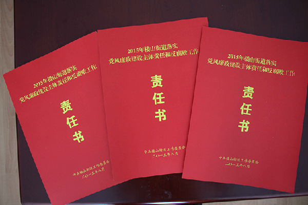 青報網(wǎng)訊 ?為認真貫徹落實黨風(fēng)廉政建設(shè)責(zé)任制和反腐敗的工作要求,強化領(lǐng)導(dǎo)班子主體責(zé)任和領(lǐng)導(dǎo)干部“一崗雙責(zé)”意識,促進黨風(fēng)廉政建設(shè)和反腐敗工作職責(zé)層層落實,近日,按照“厘清責(zé)任、分級負責(zé)”的原則,樓山街道黨工委書記與街道黨政9名班子成員和7名社區(qū)書記分別簽訂了2015年度黨風(fēng)廉政建設(shè)主體責(zé)任和反腐敗工作責(zé)任書。