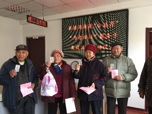 圍繞全區(qū)“公益月”活動總體部署,弘揚尊老敬老、愛老助老的優(yōu)良傳統(tǒng),為老年人獻愛心,做實事,水清溝街道通過購買服務(wù)的方式,為部分孤老、低保、空巢、不能自理和半自理的老人提供一份價值100元的入戶保潔服務(wù)卡。