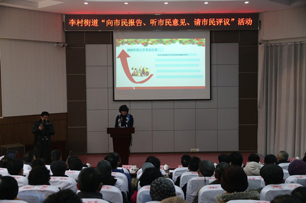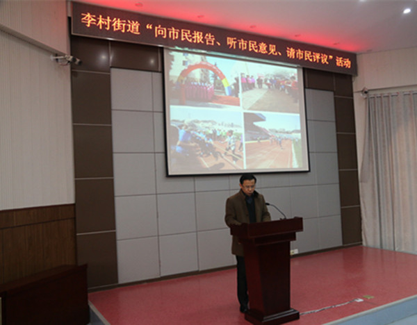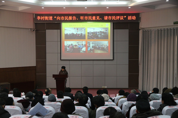????經(jīng)過前期廣泛征集意見建議、組織市民代表報名,1月14日,李村街道舉辦“向市民報告、聽市民意見、請市民評議”活動述職報告會,活動分三場,邀請了包括社區(qū)黨員群眾、黨代表、人大代表、政協(xié)委員、新市民代表、企事業(yè)單位代表等在內(nèi)的600余名市民代表到場聽取報告和現(xiàn)場評議。