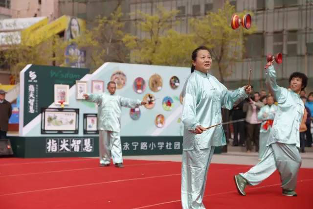 ????? ? ??412日下午的滄口維客廣場鑼鼓喧天、熱鬧非凡,翠湖社區(qū)鑼鼓開場秀、永寧路小學(xué)啦啦操表演、文昌小學(xué)查拳展示、永寧路社區(qū)居民抖空竹、打陀螺展示、升平路小學(xué)的獨(dú)輪車、中三小的花樣跳繩……由李滄區(qū)中小學(xué)生和社區(qū)居民組成的15支表演隊(duì)伍亮相美好永寧 幸福李滄永寧路社區(qū)民俗展演活動,來自全國18個地區(qū)的18支參加全國五藝展隊(duì)伍共500余名同學(xué)和老師走進(jìn)李滄觀看了民俗展演。