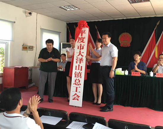 最后,平度市總工會主席王鵬飛與大澤山鎮(zhèn)黨委書記官祥斌共同為大澤山鎮(zhèn)總工會揭牌。