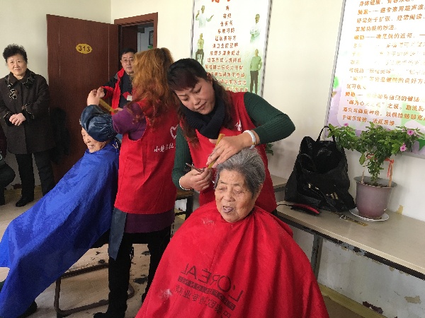 一大早街道分管社區(qū)的楊文華主任帶領工作人員和志愿者們便來到東海老年公寓,準備好理發(fā)的工具等著老人們。理發(fā)志愿者們認真地給前來的每一位老人剪發(fā),志愿者們在旁邊細心關(guān)注著老人的身體情況,熱情周到的服務,讓老人們感到非常溫暖。社區(qū)楊主任82歲的傅奶奶看著志愿者給自己剪得清清爽爽的頭型,高興地即興唱了起來,一個勁的感謝著大家。