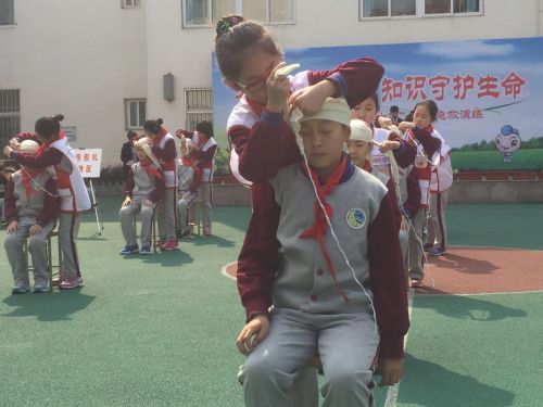 活動期間,全校師生參與了火災(zāi)逃生演習(xí),同時學(xué)習(xí)了火災(zāi)現(xiàn)場解救被困人員、重傷人員撥打120急救、輕傷人員頭部臂部包扎、昏迷人員心肺復(fù)蘇急救術(shù)、模擬滅火等演練。此外,市南區(qū)為文登路小學(xué)的同學(xué)們授予了“紅十字青少年救護(hù)隊”隊旗,現(xiàn)場還發(fā)放了紅十字標(biāo)志的益智拼圖。