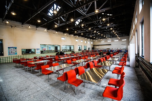 工作人員在原廠區(qū)食堂改造而成的園區(qū)食堂內(nèi)就餐。