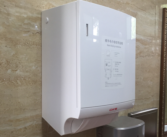 公廁內(nèi)加裝擦手毛巾卷設(shè)備,使用時(shí)下拉毛巾擦手,12秒后分配器自動(dòng)回收已用毛巾卷,設(shè)備對(duì)回收毛巾進(jìn)行消毒清洗,可循環(huán)利用,減少紙張浪費(fèi),低碳環(huán)保,為市民如廁帶來新體驗(yàn)。