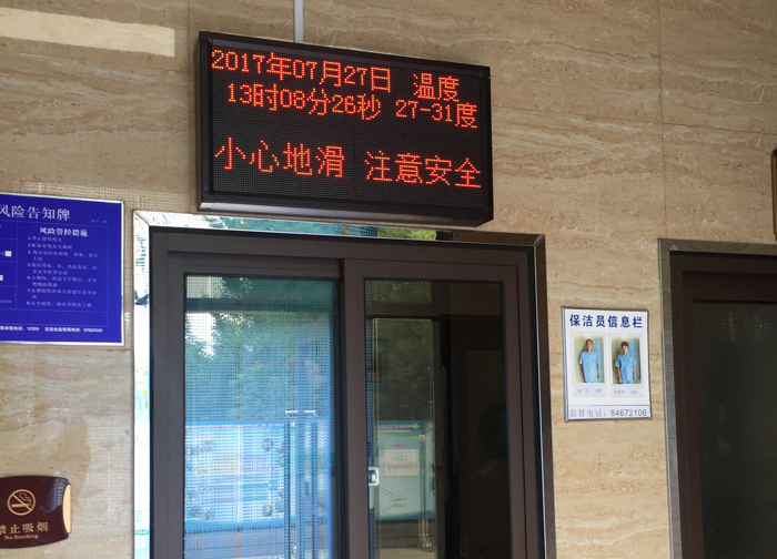 公廁加裝LED顯示屏,屏幕顯示日期、時(shí)間、溫度,并滾動(dòng)播放文明標(biāo)語及溫馨提示,引導(dǎo)市民文明如廁,為市民提供便利。