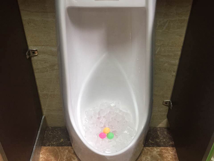 小便斗采用投放冰塊的方式除味,冰塊內(nèi)添加醋和檸檬汁,科學(xué)配比,起到抑菌、清潔、除味的效果,并有效降低室內(nèi)溫度。