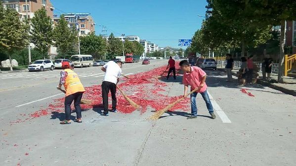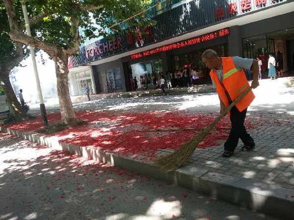 ????青報網(wǎng)訊? 農(nóng)歷七月二十二,是傳統(tǒng)習(xí)俗中的財神節(jié),商家們都在鞭炮聲中迎接這一節(jié)日,從早晨開始,城區(qū)的鞭炮聲此起彼伏,不絕于耳。但燃放煙花爆竹產(chǎn)生了大量的殘留物,影響了城區(qū)的道路環(huán)境。