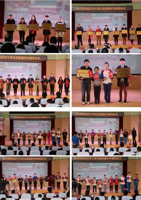 所謂創(chuàng)客,就是一群熱衷于做自己想做的事,用技術(shù)改變生活的人。本次李滄區(qū)中小學(xué)生創(chuàng)客嘉年華活動為孩子們提供了充分展示自己作品的機會,既有科技創(chuàng)新、學(xué)校多彩社團作品展示,還有學(xué)校特色活動互動體驗和前沿科技項目互動體驗,創(chuàng)意結(jié)構(gòu)搭建、3D打印、VR、機器人、大型無人機等作品琳瑯滿目,科技味十足?;顒舆€對2017年李滄區(qū)科技教育先進(jìn)單位、先進(jìn)個人、科技小明星進(jìn)行了表彰。