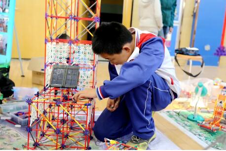 永寧路小學(xué)集中展示了學(xué)校小發(fā)明社團的作品,既有可背可掛可折疊的多功能書包,也有曾經(jīng)登上過央視舞臺的“釘釘神器”這些作品都是同學(xué)們在日常生活中對種種不方便之處多留意多思考的結(jié)果,看似簡單的改進(jìn)卻包涵了濃濃的智慧。“你能想象發(fā)明釘釘神器的這位同學(xué)曾經(jīng)對對學(xué)習(xí)非常不‘感冒’嗎?”曾任永寧路小學(xué)校長的張惠嬈告訴記者,“后來一次偶然的機會他加入了學(xué)校的科技創(chuàng)新發(fā)明社團,似乎一下子打開了腦洞,找到了自己的興趣點,轉(zhuǎn)變非常大,不僅積極參加社團活動,創(chuàng)意不斷,還變得對其他學(xué)科的學(xué)習(xí)也很上心,成績蹭蹭往上升,去央視現(xiàn)場錄制節(jié)目時候表現(xiàn)也很好!”談起這位小創(chuàng)客,張校長感觸頗深,她認(rèn)為創(chuàng)客教育對孩子的影響十分深遠(yuǎn)。