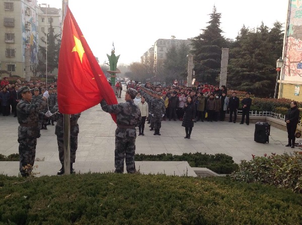 青報網(wǎng)訊 ?新年辭舊歲,升旗慶元旦。2018年1月1日早晨,迎著初升的朝陽,樓山街道翠湖社區(qū)于社區(qū)文化廣場隆重舉行升旗儀式,社區(qū)黨員干部樓長和居民不約而同齊聚在升旗臺下,在冉冉升起的五星紅旗下迎接新年到來!來祝賀祖國在新的一年有新的氣象?! ∩衔?時,升旗儀式正式開始,社區(qū)1名民兵手握國旗,2名護旗民兵英姿颯爽,邁著矯健的步伐,護衛(wèi)著國旗走向旗桿。伴隨著雄壯的國歌,升旗手振臂一揮,鮮艷的五星紅旗迎著朝日冉冉升起。全場人群不畏凜冽的寒風(fēng),聚精會神的行注目禮,齊唱國歌,共同祝福我們的祖國在新的一年里更加繁榮昌盛,祝愿社區(qū)的明天更加燦爛美好。