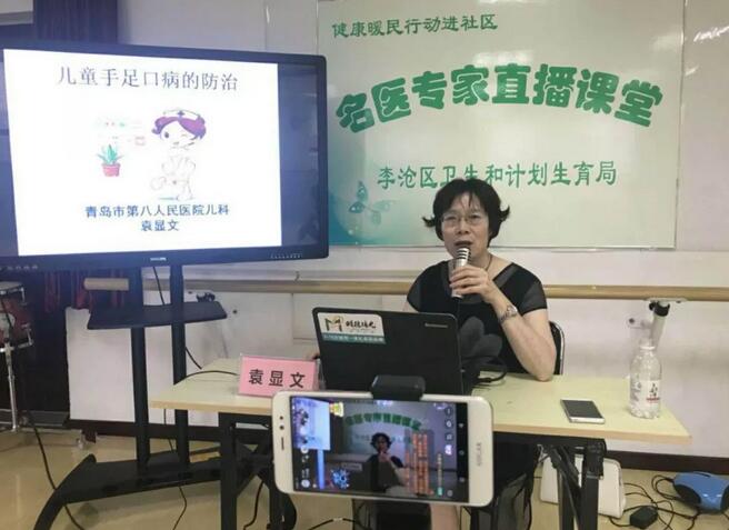 為了解決以上一系列嬰幼兒家長關(guān)心的問題,由李滄區(qū)衛(wèi)生和計劃生育局主辦、青島明德陽光教育投資管理有限公司承辦的“暖民行動進社區(qū)”——名醫(yī)專家直播課堂第十三期特別邀請了青島市第八人民醫(yī)院兒科主任袁顯文進行了《兒童手足口病的防治》專題講座。