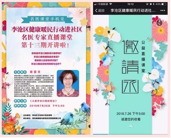 通過本期的名醫(yī)專家直播課堂,增進了李滄區(qū)廣大嬰幼兒家長對手足口病的了解和預(yù)防,緩解了對手足口病的恐慌,提高了對手足口病的預(yù)防意識及防控能力。