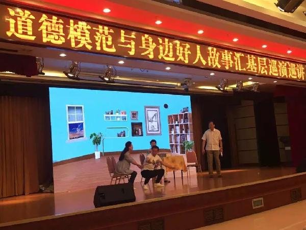 現(xiàn)場(chǎng)講述了香港中路街道的“溫情天使”--“中國(guó)好人”、全國(guó)學(xué)雷鋒志愿服務(wù)“四個(gè)100”最美志愿者、山東省道德模范楊曉玲敬老愛老、無(wú)私奉獻(xiàn)的故事《愛滿家園情暖人間》;還講述了山東省道德模范、“感動(dòng)青島”道德模范--青島大學(xué)附屬醫(yī)院普外科主任醫(yī)師、教授、醫(yī)院終身醫(yī)學(xué)專家張默道舍小家為大家,愛病人勝過自己的故事《大醫(yī)大愛仁者仁心》;以及以“燈塔衛(wèi)士”--山東好人、市南區(qū)道德模范王炳交感人事跡創(chuàng)作的快板《燈塔下的誓言》等節(jié)目,不僅博得了現(xiàn)場(chǎng)觀眾的陣陣掌聲,也讓現(xiàn)場(chǎng)觀眾感動(dòng)得熱淚盈眶。