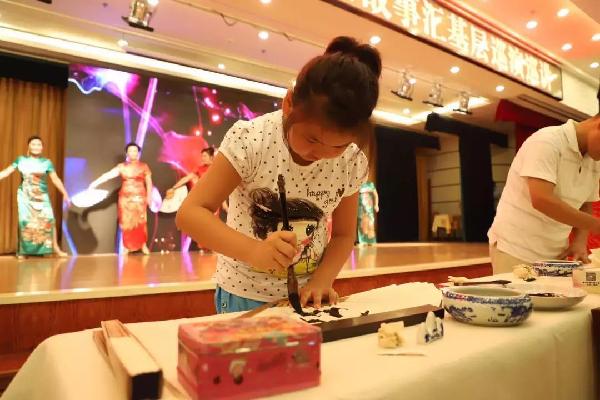 由中國(guó)書法協(xié)會(huì)會(huì)員、青島市書協(xié)副主席田文玲等眾多書法藝術(shù)家與香港中路街道老年大學(xué)模特隊(duì)聯(lián)袂演出的《翰墨展新風(fēng)接力共傳承》,通過書法和旗袍秀相結(jié)合的形式向觀眾展示了24字社會(huì)主義核心價(jià)值觀。