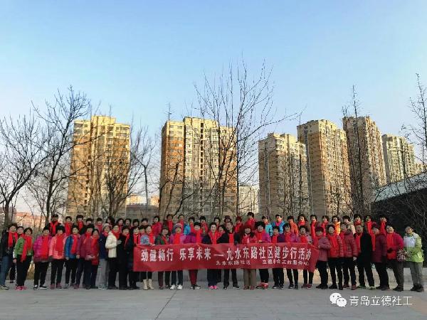 為了更好的宣傳低碳環(huán)保理念,營造濃郁的全民健身氛圍,引導廣大社區(qū)居民積極參加體育健身活動,不斷提高健身意識和健康水平,養(yǎng)成積極健康、文明環(huán)保的生活方式,12月18日上午,九水東路社區(qū)攜手立德社會工作服務中心共同舉辦以“勁健暢行,樂享未來”為主題的九水東路社區(qū)健步行活動。此次活動吸引了110位社區(qū)居民積極參與。早上8點多,社區(qū)居民早早的在李村河邊的銅川路橋南廣場集合,大家精神抖擻,著裝輕便,顯然已為此次活動做好了充分的準備?;顒右潦迹鐓^(qū)居委會副主任呂鵬為本次活動致辭,其后,立德社工簡要的說明了活動注意事項,健步行正式開始。
