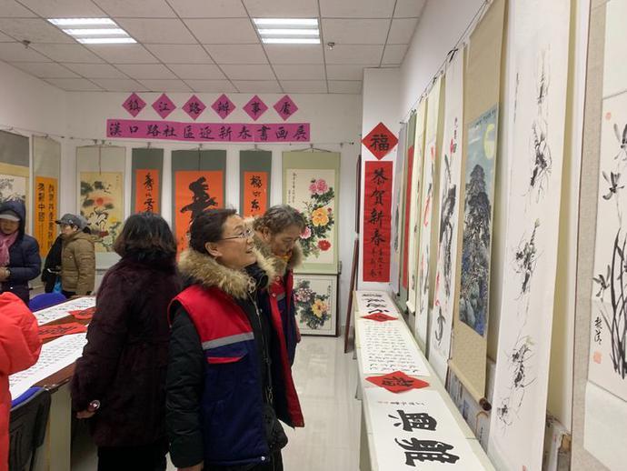 近日,在鎮(zhèn)江路街道辦事處漢口路社區(qū)活動室內(nèi),一場主題為“向新春和改革開放四十周年獻禮”的社區(qū)書畫展正在火熱進行。書畫展以“賀新春”、“改革開放四十周年”、“愛國主義”等為主題,展出50余幅風(fēng)格各樣、精彩紛呈的書畫作品,吸引了大量市民紛紛前來觀展。