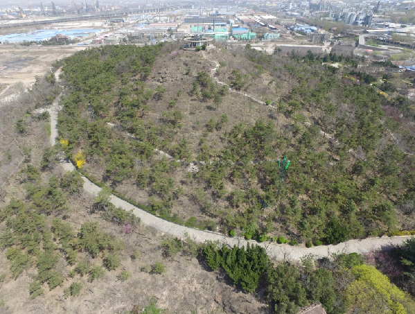 煙墩山公園建成于1985年,位于青島市李滄區(qū)西北部,汾陽路21號甲,西鄰膠州灣,東靠膠濟(jì)鐵路,與樓山公園隔路相望,南鄰國棉八廠宿舍,北依樓山后老工業(yè),總面積約為8.98公頃。