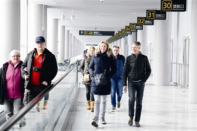 圖1:青島郵輪母港簡化入境檢查手續(xù),旅客入境平均速度由原來的45秒縮短到5秒。