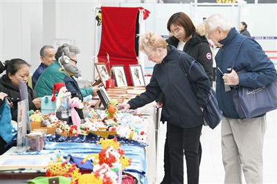 圖2:歡迎儀式上,剪紙、皮影、烙畫、瓷板畫、面塑、刺繡等民俗表演吸引了外國游客駐足。