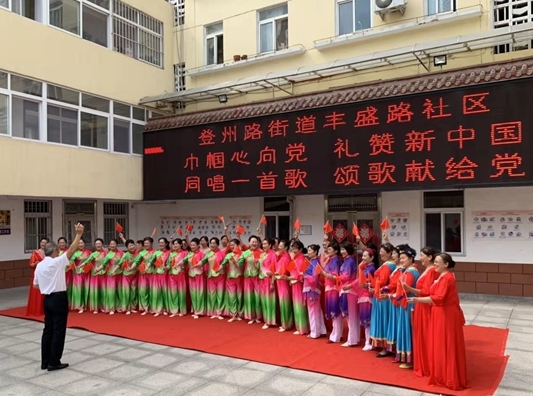 為了慶祝中華人民共和國建國70周年、中國共產(chǎn)黨建黨98周年,近日,登州路街道豐盛路社區(qū)組織轄區(qū)黨員群眾在社區(qū)大院內(nèi)開展“巾幗心向黨、禮贊新中國,同唱一首歌、頌歌獻給黨”主題活動。前來參加唱響頌歌的轄區(qū)居民和黨員熱情高漲,唱歌前大家自覺站立,等待莊嚴時刻。