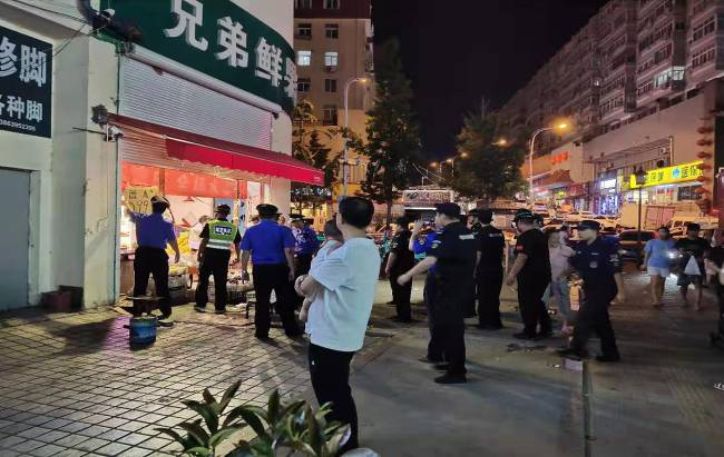 ????1、8月21日晚遼寧路街道執(zhí)法中隊(duì)組織開展夜間執(zhí)法巡查,聯(lián)合區(qū)機(jī)動(dòng)隊(duì)對(duì)小鮑島市場周邊樂陵路、桓臺(tái)路進(jìn)行集中清理整治,規(guī)范跨門經(jīng)營3處,維持良好的夜間環(huán)境秩序。