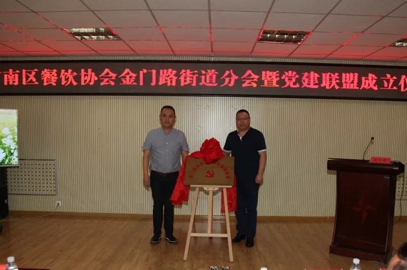 分會(huì)揭牌后,舉行了金門(mén)路街道餐飲行業(yè)黨建聯(lián)盟成立儀式。各成員單位一致通過(guò)了聯(lián)盟章程,選舉產(chǎn)生了聯(lián)盟理事長(zhǎng)、副理事長(zhǎng)和秘書(shū)長(zhǎng)。街道黨工委書(shū)記、市南區(qū)餐飲協(xié)會(huì)會(huì)長(zhǎng)共同為黨建聯(lián)盟揭牌。