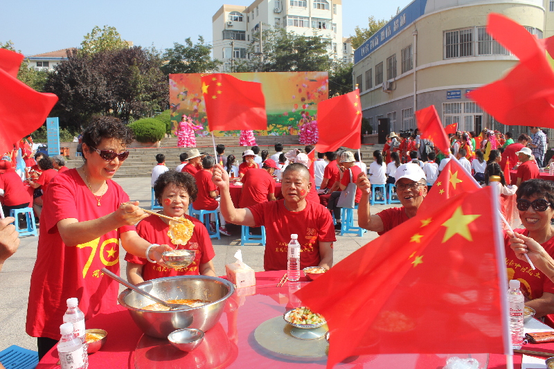 10月1日,由青島市市委宣傳部主辦,市北區(qū)委宣傳部、水清溝街道辦事處共同承辦的慶祝中華人民共和國成立70周年“國泰民安、吃國慶面”活動在水清溝街道海豐廣場舉行。
