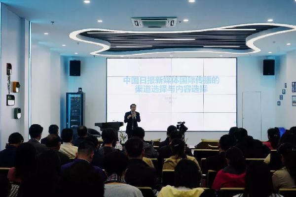 ????▲中國日報社新媒體部主任柯榮誼做“新時代 加強(qiáng)地方國際傳播能力建設(shè)”培訓(xùn)講座