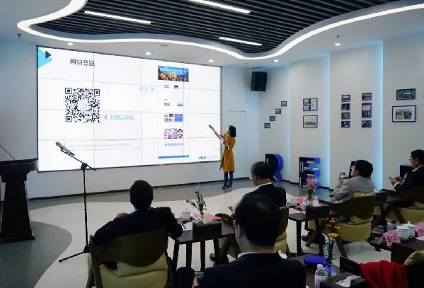 ????▲中國日報網(wǎng)地方專題部副總編輯施力維介紹市南區(qū)英文網(wǎng)站